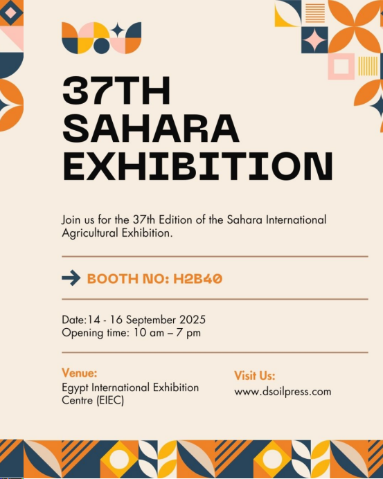 鄭州鼎盛機(jī)械有限公司,將于2025年9月14至16日在埃及國際展覽中心,第37屆撒哈拉國際農(nóng)業(yè)展覽會(huì)參展,和各國友人交流分享榨油機(jī)各種知識(shí)。